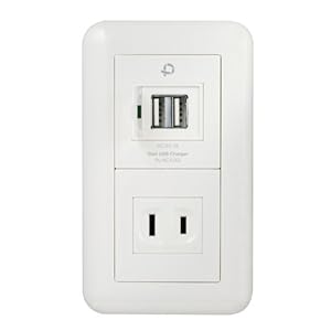 写真はPLANEX COMMUNICATIONS INC.から発売されているPL-KC1US2。自分の部屋の壁に埋め込んであるコンセントをこれに変えるだけで、コンセントから直接USB充電が可能となる便利なコンセント。